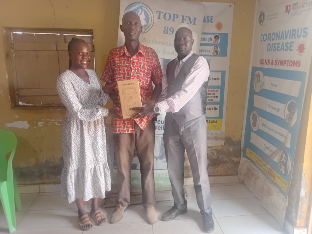 The radio sets were provided as support to Top FM 89.7 by the Association for Media Development in South Sudan (AMDISS). The initiative aims to strengthen community access to information and promote active listener engagement through radio broadcasting.
